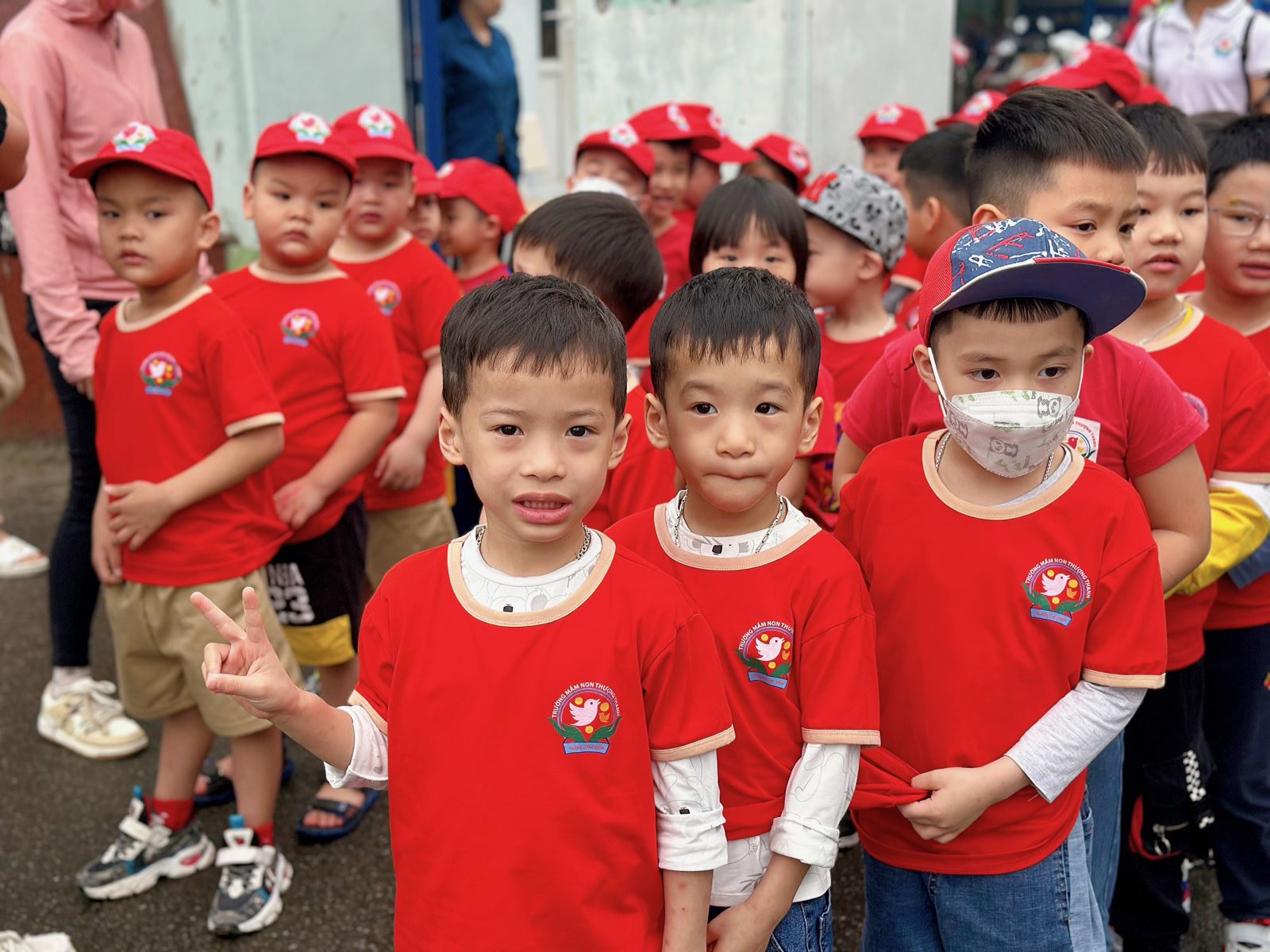 Buổi đi thực tế náo nhiệt và rộn ràng, phụ huynh đã đưa các bạn nhỏ có mặt sớm và đông đủ tại trường. Các bé ai nấy đều rạng rỡ, vui mừng, háo hức với chuyến đi sắp tới. Niềm vui của các bạn nhỏ còn được nhân lên gấp bội khi thời tiết ngày hôm nay cũng rất ủng hộ cho chuyến đi. Đến giờ xuất phát, các bạn nhỏ tập trung theo hiệu lệnh của cô giáo và các cô chú hướng dẫn viên du lịch và sẵn sàng lên đường đi tham quan. Các bạn nối đuôi nhau thành hàng thành lối, nghiêm túc, ngay ngắn, đặc biệt là gặp ai các bạn cũng đều chào hỏi lễ phép thể hiện rõ nét văn hóa chào.
