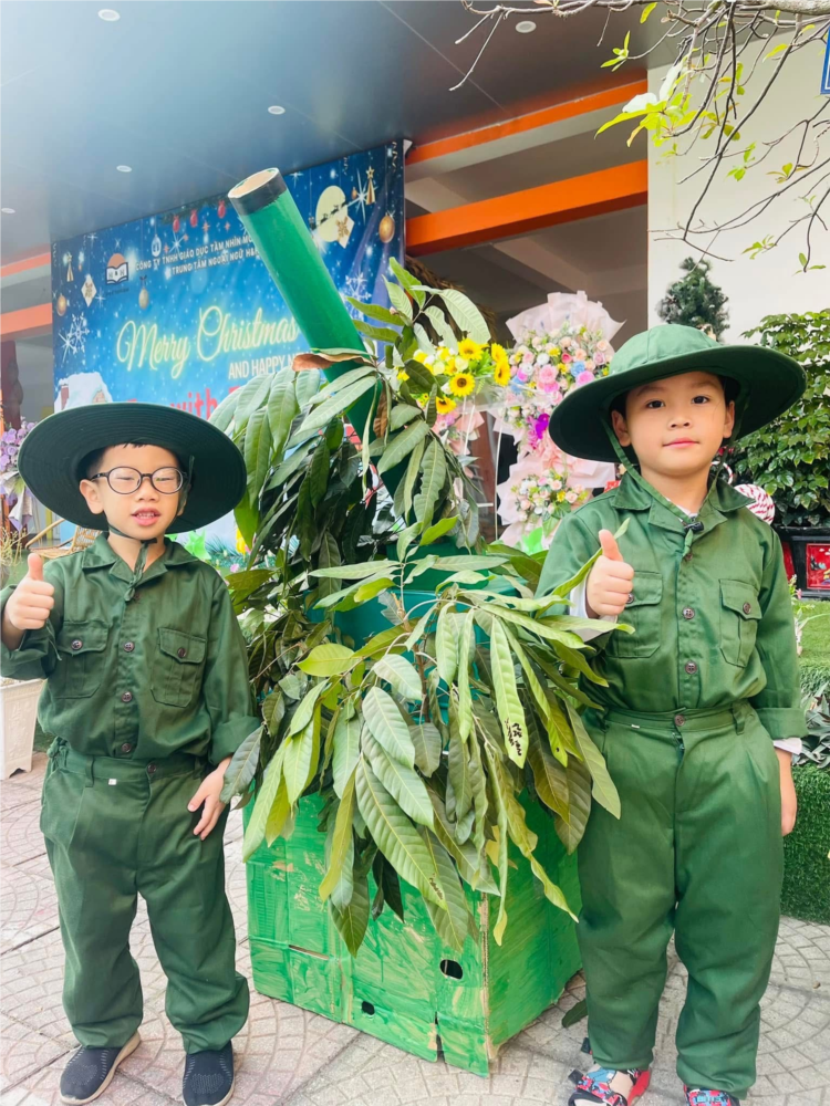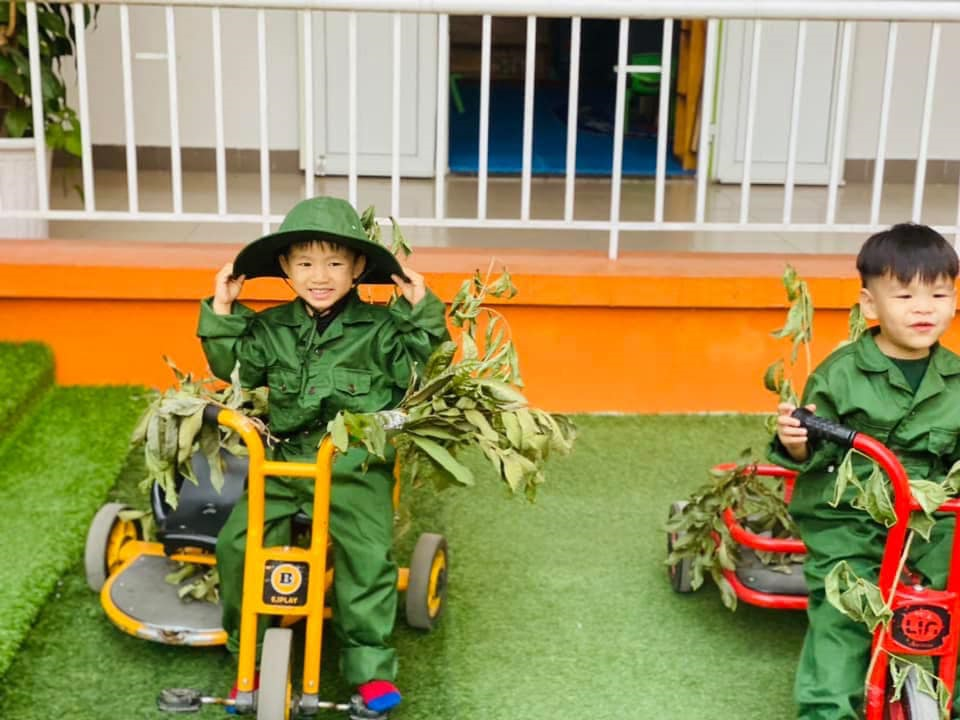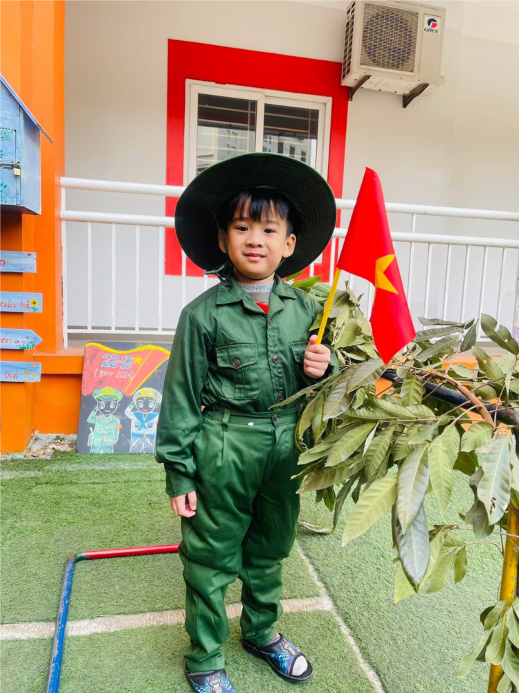 Album ảnh đẹp tháng 12:Cùng các bé lớp A2 trải nghiệm làm chú bộ đội