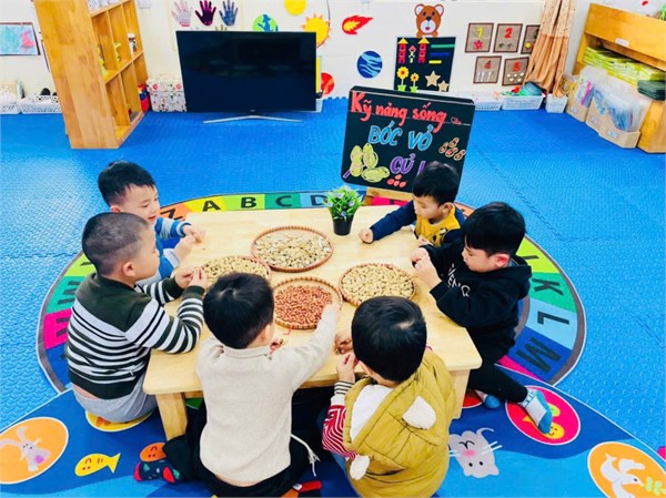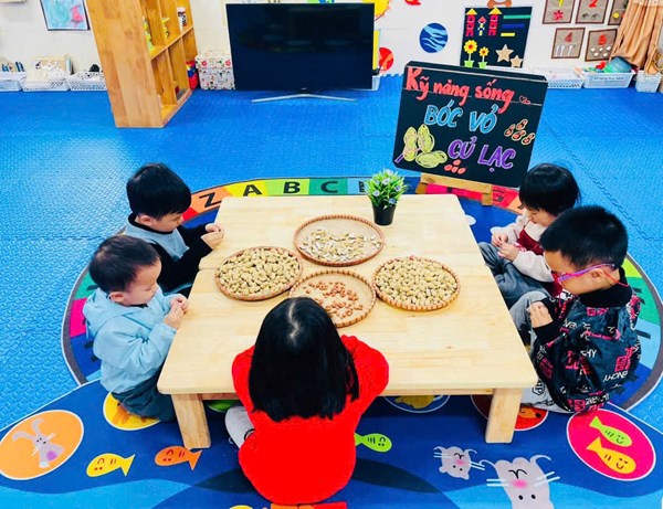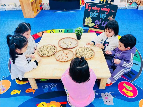 Album ảnh đẹp tháng 3: Hình ảnh trải nghiệm bóc vỏ lạc của các bạn nhỏ lớp MGB C2