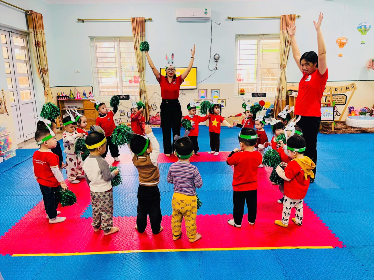 Cùng các bé trường MN Thượng Thanh tập thể dục sang trong không gian xanh mát và yêu thương