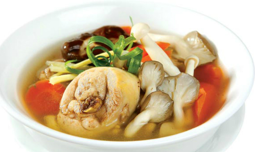 Canh gà nấm rơm.