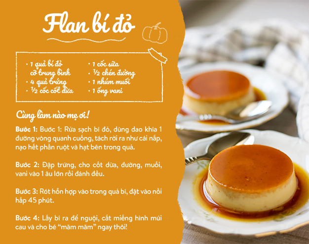 Bí đỏ chứa nhiều vitamin C, rất cần thiết cho làn da của bé khỏe mạnh. Hơn nữa, trong bí đỏ có chứa lutein, zeaxanthin, vitamin E và nhiều chất chống oxy hóa khác nữa đó!