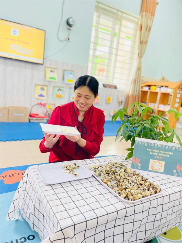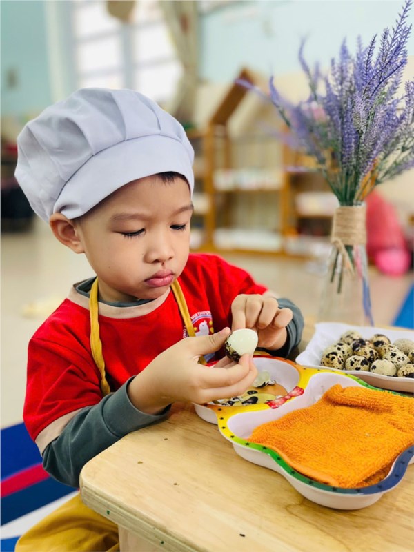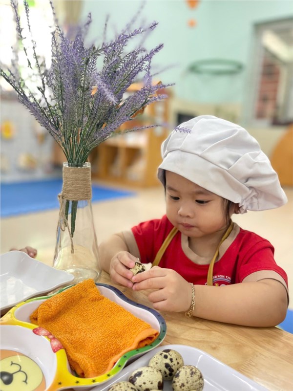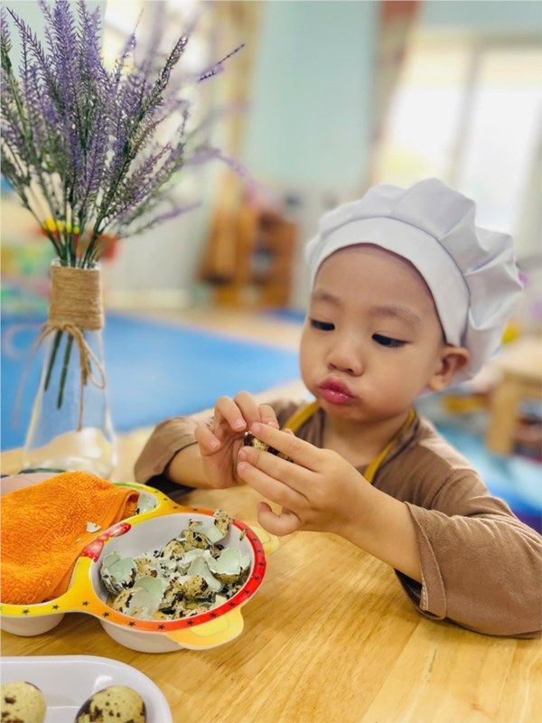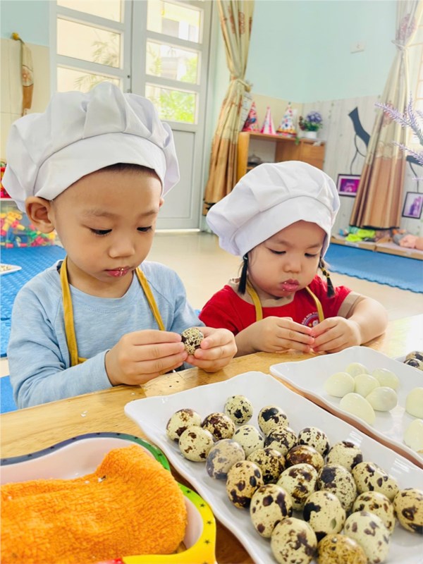 Tập ảnh : Thư viện ảnh ALBUM ẢNH ĐẸP THÁNG 11- LỚP NT D2 - BÉ TẬP BÓC VỎ TRỨNG CÚT