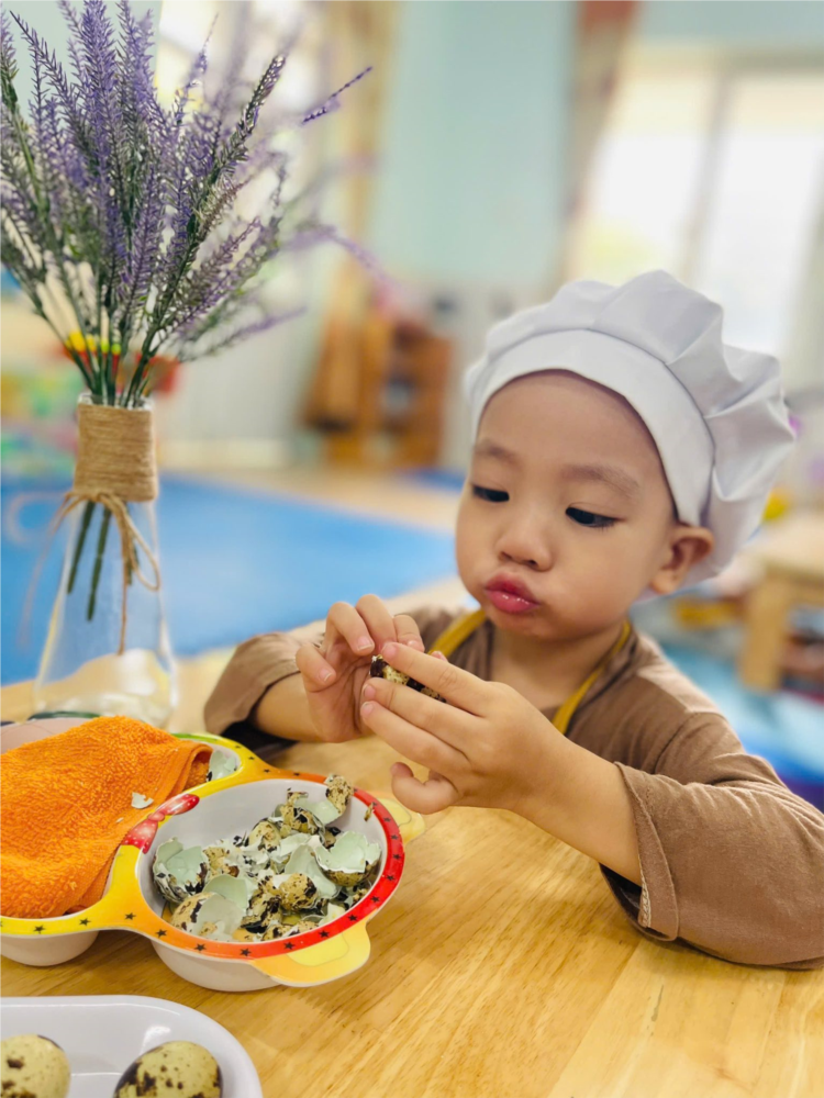 Thư viện ảnh ALBUM ẢNH ĐẸP THÁNG 11- LỚP NT D2 - BÉ TẬP BÓC VỎ TRỨNG CÚT