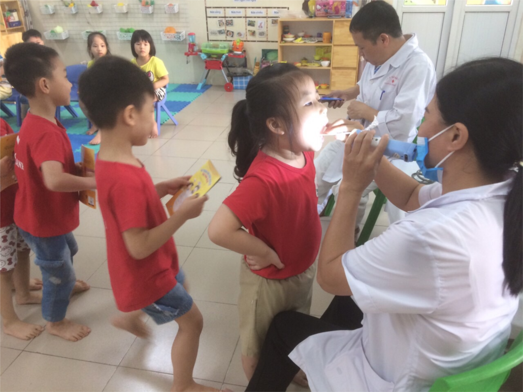 Khám sức khoẻ định kỳ cho các trẻ là hết sức thiết thực và ý nghĩa thông qua việc khám sức khỏe định kỳ cho trẻ đã góp phần không nhỏ vào việc nâng cao nhận thức cho phụ huynh về ý thức phòng chống một số bệnh thường gặp ở trẻ lứa tuổi mầm non và cũng qua hoạt động này đã đem lại sự phấn khởi, tin tưởng trong các bậc phụ huynh về một môi trường giáo dục an toàn và thân thiện. Sau một ngày làm việc nhiệt tình và trách nhiệm cao 100% trẻ trong nhà trường đã được khám sức khoẻ.